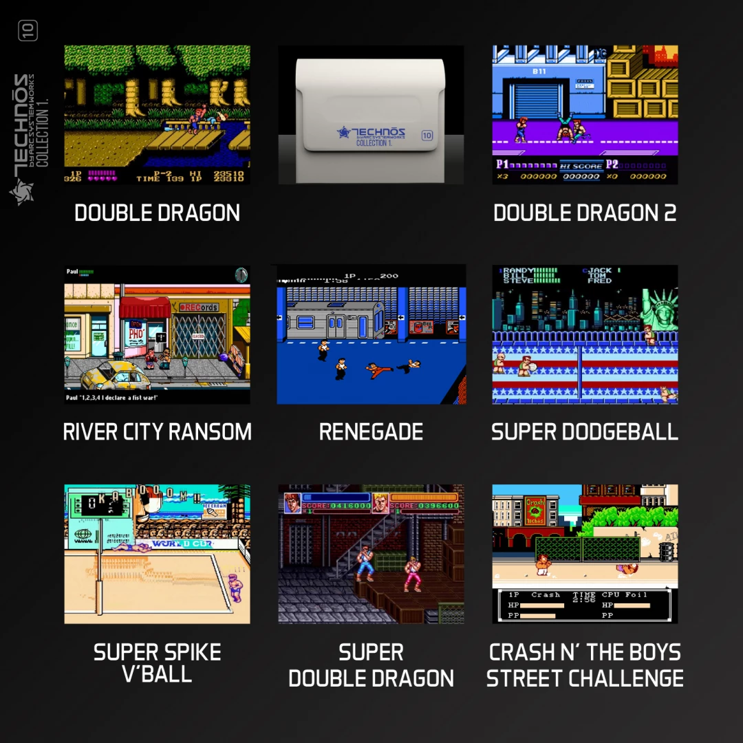 De Technos Collection 1 cartridge brengt 8 classic Technos games (o.a: Double Dragon, Super Spike V’Ball en Renegade) naar de Evercade! De cartridge wordt geleverd in een prachtige, fysieke verzamelbox in retrostijl.