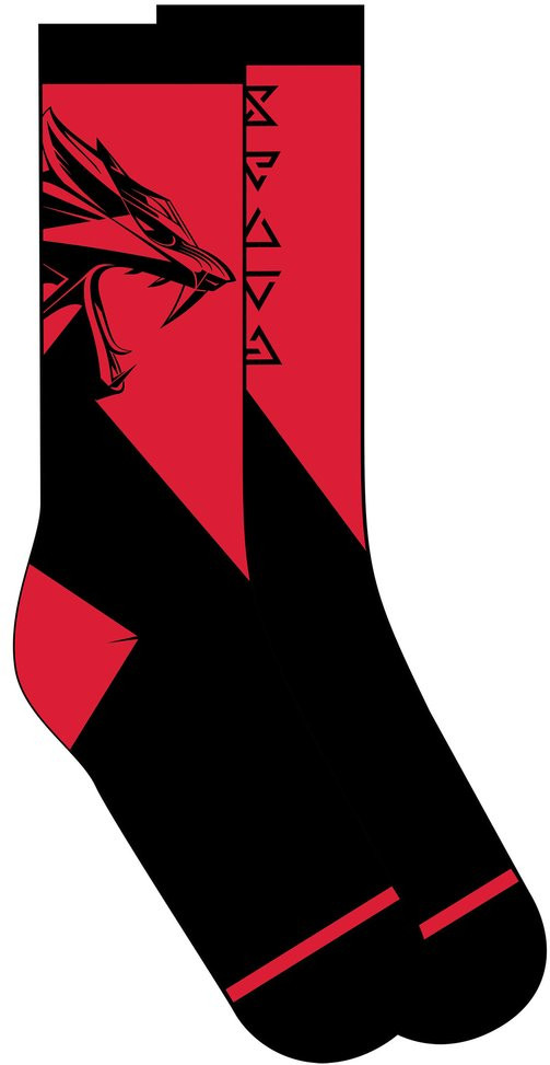 - Zwarte sokken met rode accenten, met een Wolf-silhouet aan de buitenkant en Signs of the Witcher aan de binnenkant van elke sok