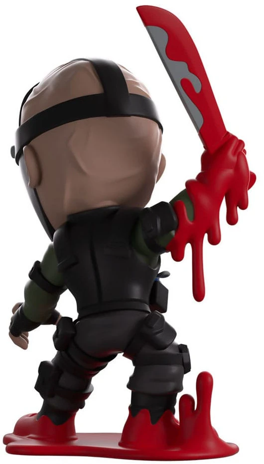 Een nieuwe operator betreedt de scène met brute kracht: hier is de Call of Duty Youtooz Vinyl Figure – Jason. Deze angstaanjagende figure staat 11 cm hoog en houdt zijn machete gereed, klaar om elk doelwit te treffen. Dikke druppels rood bloed glijden langs het wapen naar beneden en bedekken zijn stevige laarzen, terwijl het donkere hockeymasker en getatoeëerde kale hoofd een huiveringwekkende uitstraling geven. Zijn tactical vest met shells en granaten, gecombineerd met een lange groene mouw shirt en zwarte fingerless gloves, maakt hem klaar voor elke strijd.
