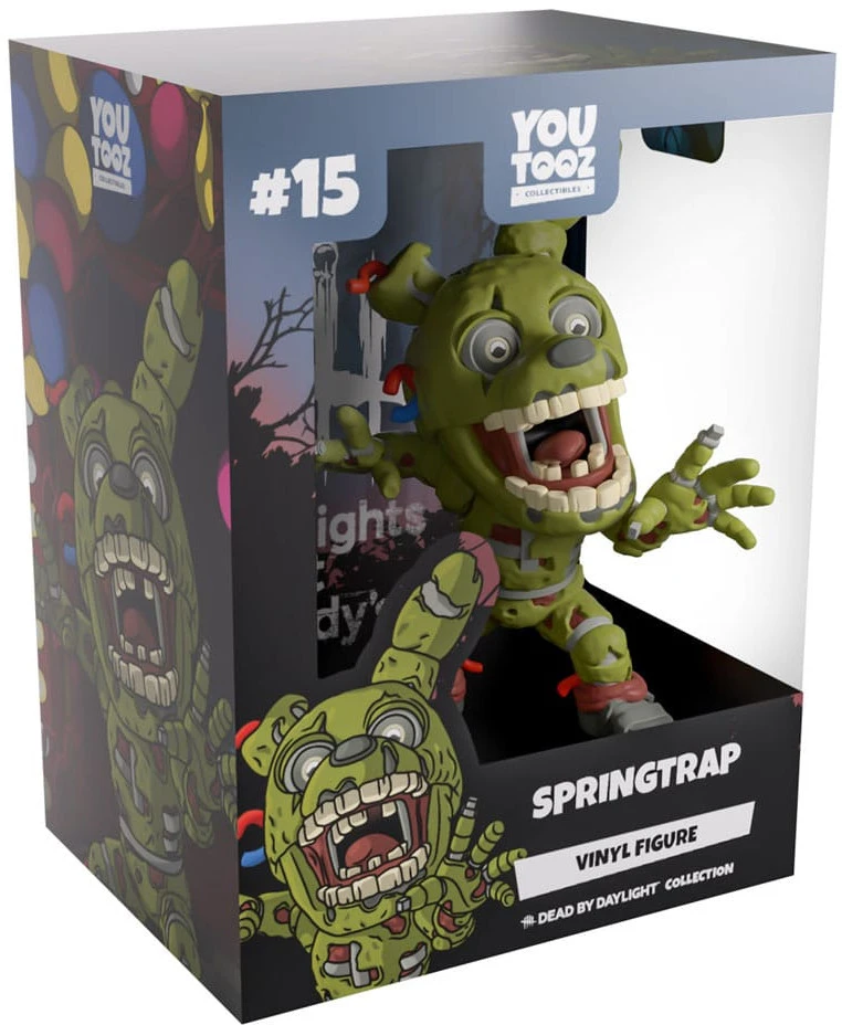 Grijp een stuk 'za terwijl Bill je in stukjes hakt! Net wanneer je denkt dat Springtrap niet enger kon worden, is zijn Dead by Daylight-vorm nu een Youtooz collectible! Deze verwoeste robot staat dreigend overeind op 13 cm hoog. Zijn verminkte animatronische hand reikt naar voren over een giftig groen lichaam, terwijl hij een gekwelde kreet uitstoot uit de vlezige mond in zijn vervallen hoofd.