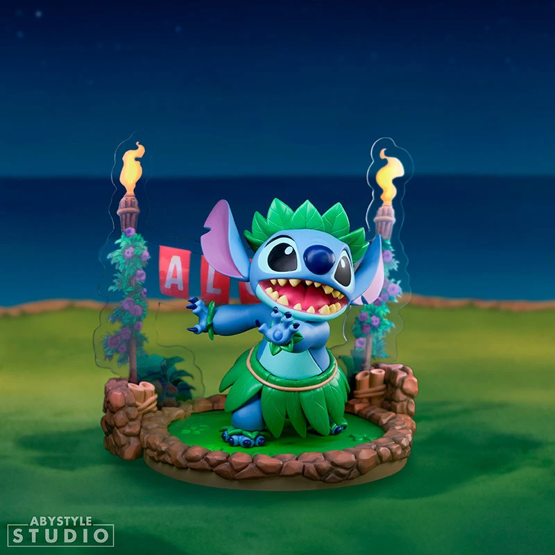 Stitch brengt de warmte van Hawaii naar je collectie in deze speelse Hula-pose. Gehuld in traditionele Hawaiiaanse kleding en dansend op een kleurrijk tropisch platform toont hij precies waarom hij zo geliefd is: schattig, eigenzinnig en altijd vol energie. De sculpt vangt zijn expressie en beweging op een charmante, dynamische manier die perfect past bij fans van Lilo & Stitch.