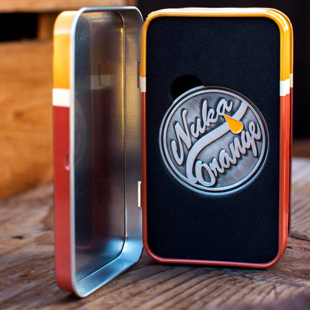 – Nuka-Orange Pin: Een collectible pin (4.5 cm hoog) gemaakt van Nickel en Hard enamel met een Glitter-effect.