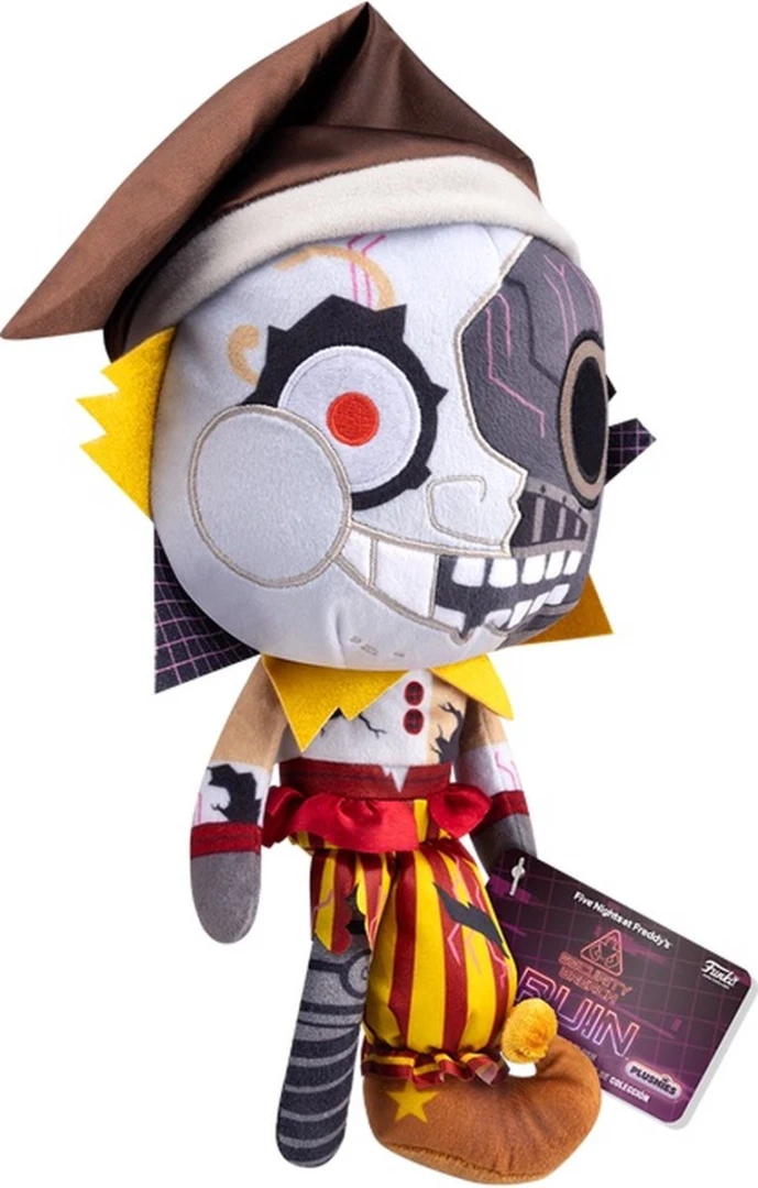 Duik in de wereld van Five Nights at Freddy’s: Security Breach met deze knuffel van Moon, de sinistere tegenhanger van Sun. Zijn maanvormige gezicht, scheve glimlach en speelse maar onheilspellende uitstraling maken hem direct herkenbaar voor elke fan van de Pizzaplex. Perfect om te verzamelen, te knuffelen of als sfeervol decorstuk voor je FNaF-collectie.