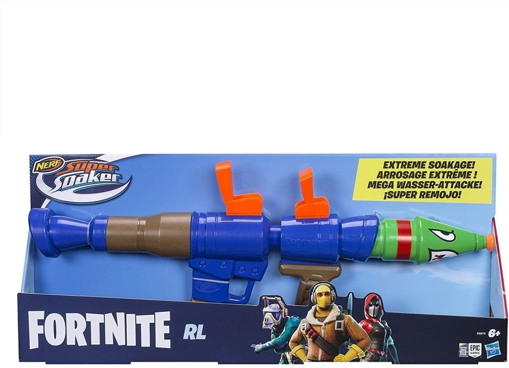 De Fortnite RL-waterblaster is geïnspireerd op de blaster die in Fortnite wordt gebruikt en repliceert het uiterlijk en de kleuren van de raketwerper uit de populaire videogame! Breid de Fortnite-fantasie uit naar de achtertuin en doorweek de concurrentie met extreme soakage! Deze Nerf super soaker waterblaster kan tot 200 ml water bevatten. Het is gemakkelijk te vullen en gemakkelijk af te vuren. Dompel de voorkant onder in water en trek de hendel naar achteren om de tank te vullen en duw vervolgens de hendel in om een enorme stroom naar je doelen te sturen. Geniet van tegenstanders met een hevige storm van de Nerf super soaker Fortnite RL waterblaster!