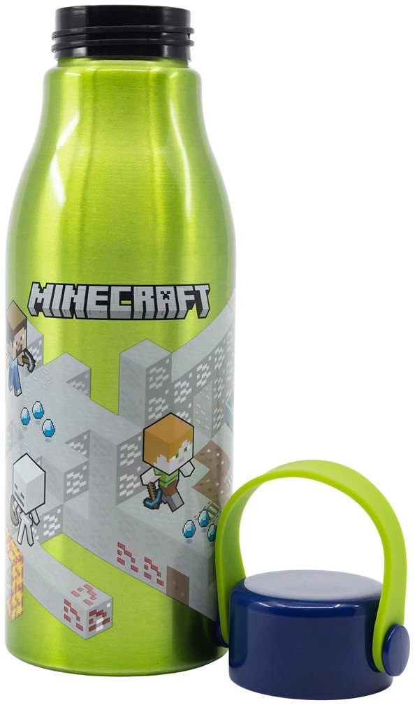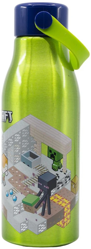 Deze Minecraft aluminium drinkfles is ideaal voor jonge avonturiers die graag hun favoriete wereld overal mee naartoe nemen. De fles is gemaakt van stevig aluminium, heeft een flexibele siliconen hengsel-dop en is versierd met een “In the Mines”-design vol herkenbare Minecraft-elementen. Licht, duurzaam en perfect voor school, sport of onderweg.