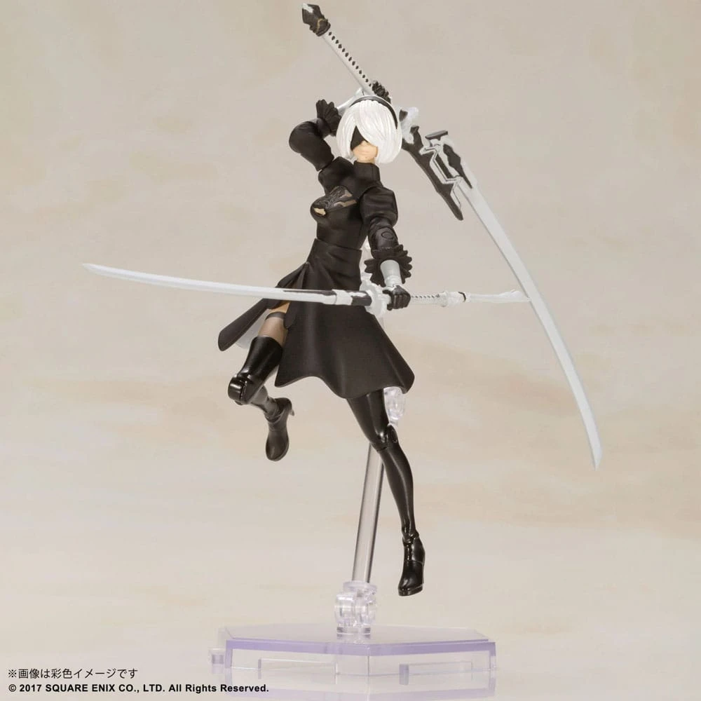 2B en 9S hebben talloze articulation points, waardoor je dynamische in-game poses kunt nabootsen. 2B wordt geleverd met haar wapens Virtuous Contract en Virtuous Treaty, evenals Pod 042. Je kunt haar bovendien recreëren in haar post-self-destruction form of met haar blindfold verwijderd.