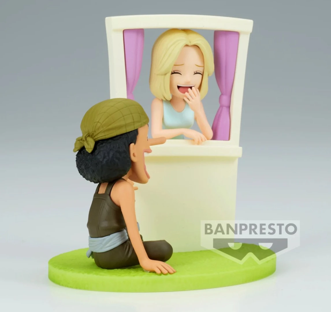 Duik in een van de meest hartverwarmende vriendschappen uit de East Blue Saga met dit WCF Log Stories figuur van Usopp & Kaya! Deze Banpresto creatie legt een memorabel moment vast, waarbij Usopp, de schutter en meester-verteller van de Straw Hat crew, een van zijn fantastische verhalen deelt met zijn dierbare vriendin Kaya.