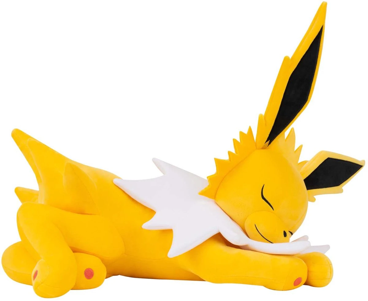 In deze Sleeping Jolteon-pluche zie je de Electric-type Pokémon in een zeldzaam moment van diepe slaap. Opgerold en vredig straalt Jolteon zachtheid en rust uit, perfect om mee te knuffelen of om als decoratief stuk tentoon te stellen.