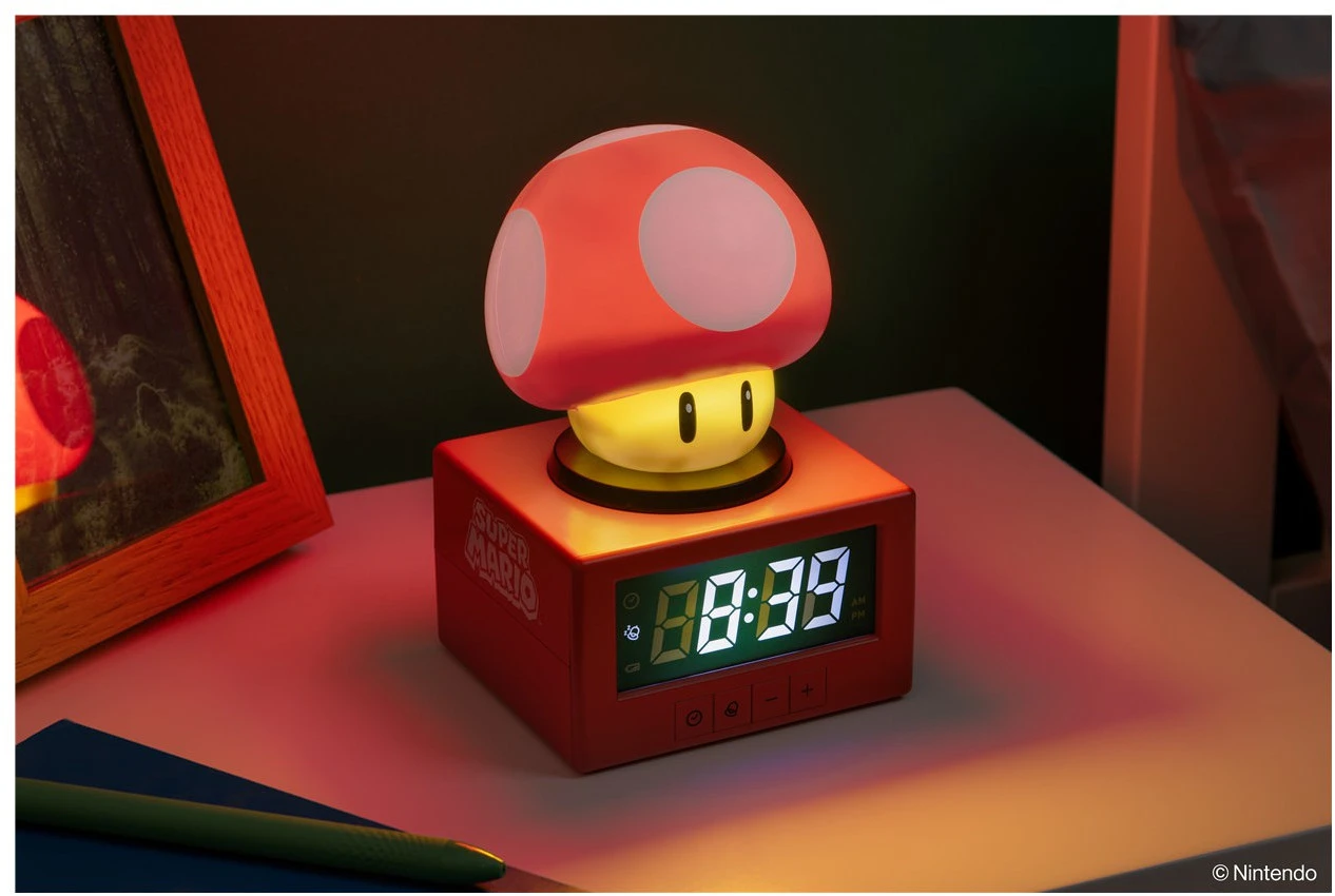 Begin je dag met de iconische energie van het Super Mario™-universum dankzij de Super Mushroom Alarm Clock. Geïnspireerd door de beroemde power-up uit de Mushroom Kingdom zorgt deze wekker niet alleen voor een vrolijke wake-up call, maar ook voor een opvallende toevoeging aan je gaming setup of verzameling.