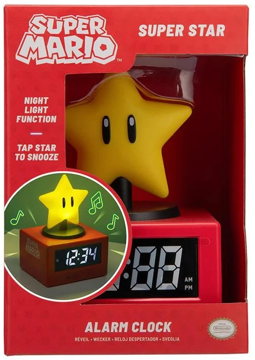 Begin elke dag met de iconische energie van het Super Mario™-universum dankzij de Super Star Icon Alarm Clock. Boven op deze digitale wekker prijkt de legendarische Super Star, klaar om jouw slaapkamer te vullen met licht en nostalgie.