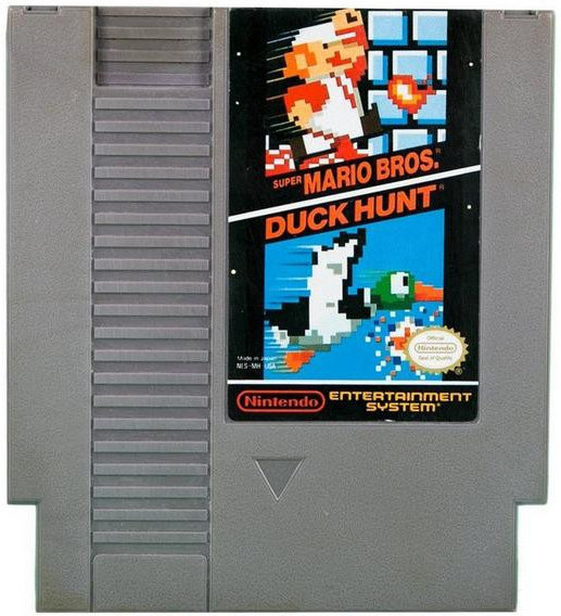 Verzamelcassette met daarop de games Duck Hunt en Super Mario Bros. Om Duck Hunt te kunnen spelen heb je wel de Nes Zapper nodig.