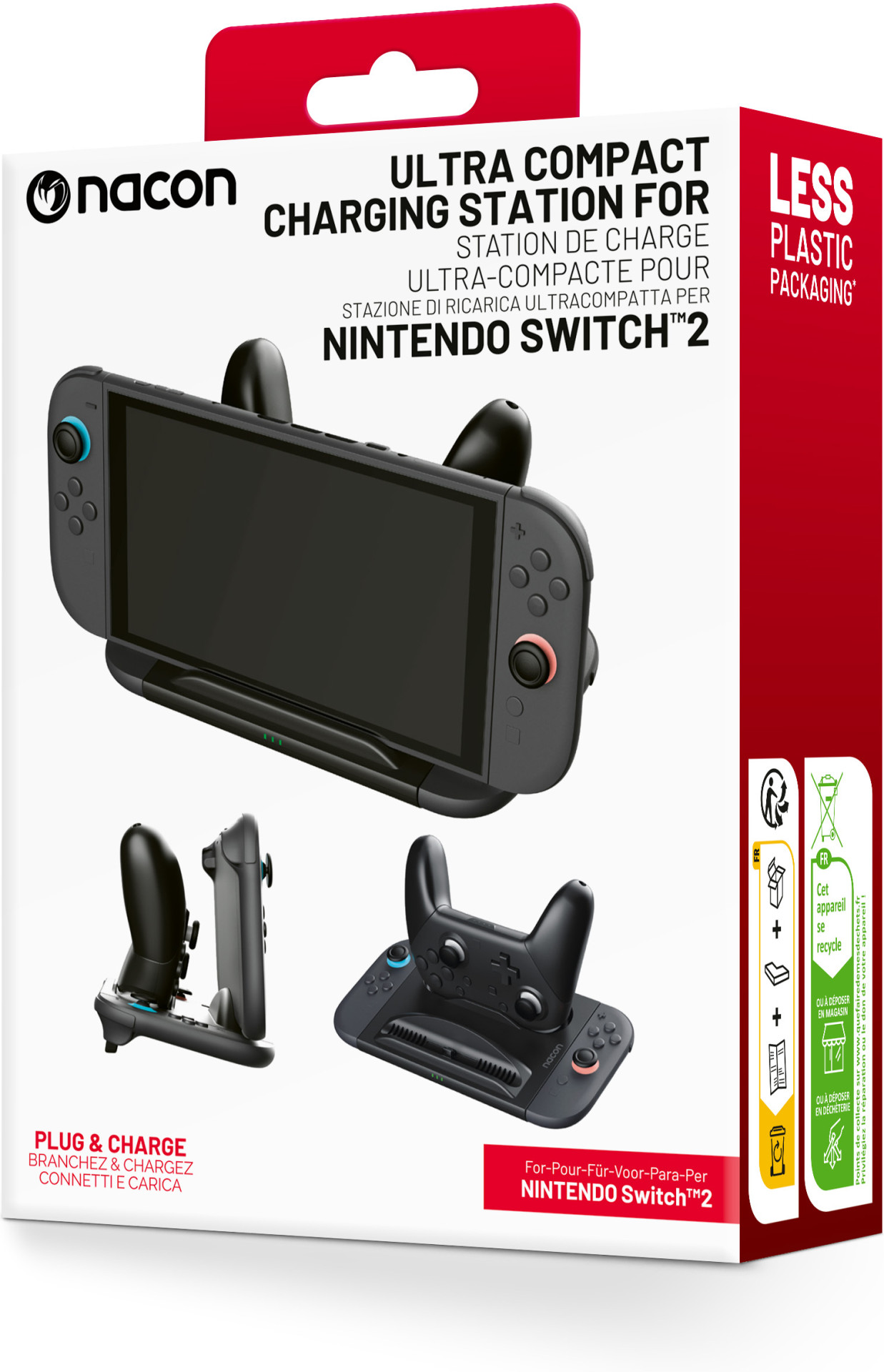 Het Nacon Ultra Compact Charging Station is de ultieme oplossing om al je Nintendo Switch™2-apparaten georganiseerd en volledig opgeladen te houden. Dit oplaadstation, met zijn slimme en ruimtebesparende design, is een must-have voor elke gamer die klaar wil zijn voor actie.