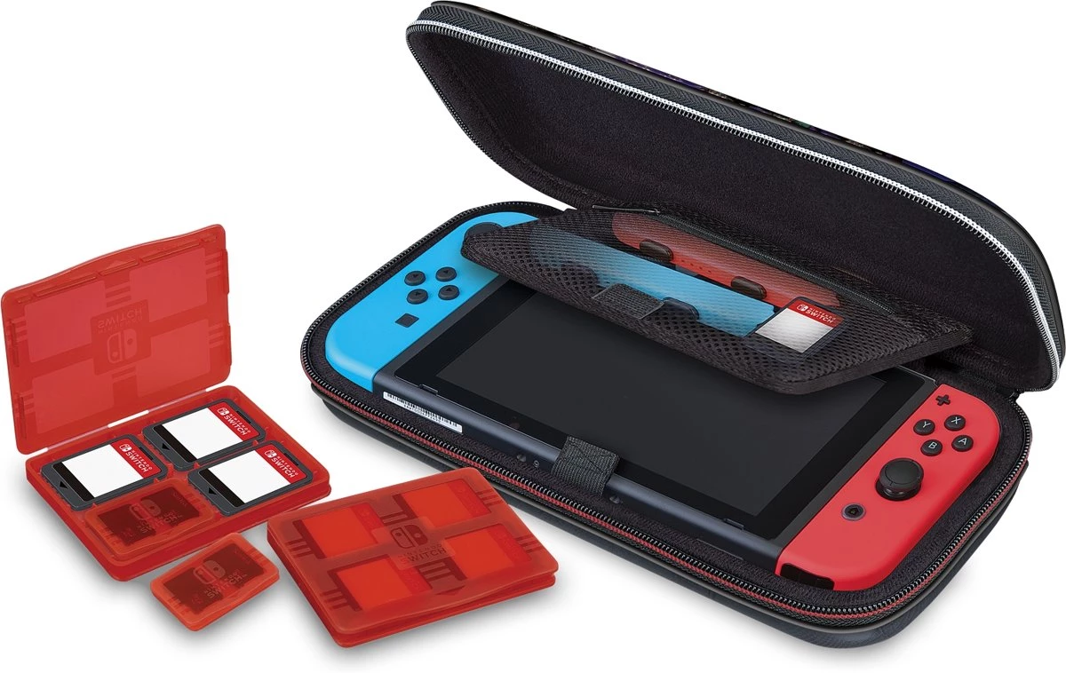 - Twee hoesjes voor Game Cards -- In elk hoesje passen 4 Game Cards.
