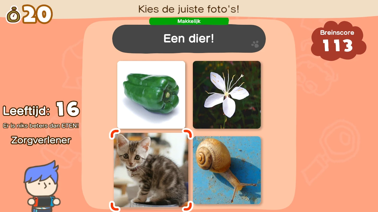 - Examen: In deze stand worden spelers in een serie van vijf activiteiten op de proef gesteld. Aan het eind van deze reeks, presenteert Professor Kwab je eigen breinscore. Probeer een steeds hogere score te halen om je kansen voor de volgende brein-tegen-brein-strijd te verbeteren! Door jezelf regelmatig te testen verdien je bovendien in-game munten waarmee je kostuums voor je avatar kunt kopen. Want het testen van je brein wordt natuurlijk nóg leuker wanneer je als een schattige kitten bent verkleed!