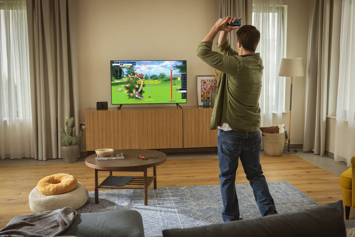 Speel met de knoppenbesturing of gebruik de bewegingsbesturing door de Joy-Con-controller als een golfclub vast te houden. Net als in het echt moet je de wind en alle elementen op de baan goed in de gaten houden, maar gelukkig kun je gebruikmaken van handige functies om de perfecte slag te slaan. Zo kun je aan de slagmeter zien hoezeer de bal zal afwijken als hij op een helling ligt, en kun je de baan scannen om de glooiingen te analyseren.