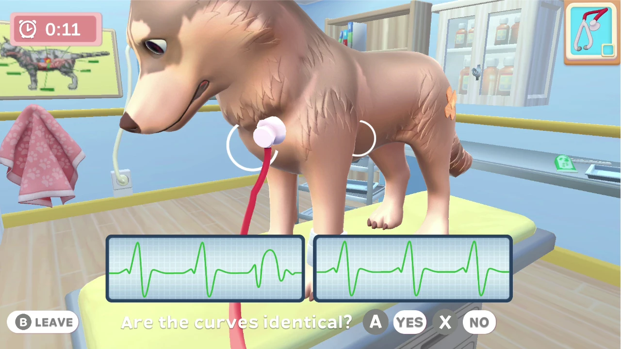 Ontdek het beroep van dierenarts en help katten en honden die jou nodig hebben. Een blessure, koorts, een dier dat weigert te eten: het is aan jou om te handelen! Let goed op tijdens het medisch onderzoek, bepaal welke zorg de viervoeters nodig hebben en zorg voor hun persoonlijk welzijn door middel van tientallen activiteiten.