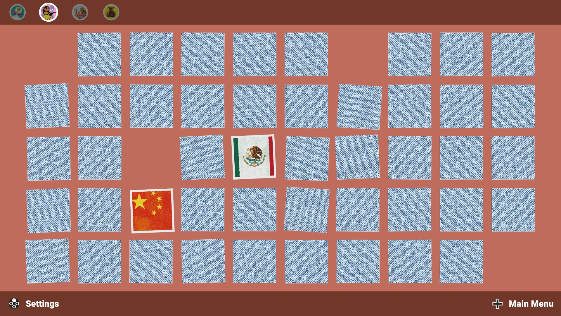Kies twee kaarten: als ze overeenkomen, mag je ze houden en nog twee kaarten onthullen. Als ze verschillen, blijven ze in het spel en is de beurt aan de volgende speler. De speler die aan het eind de meeste kaartenparen heeft, is de winnaar!
