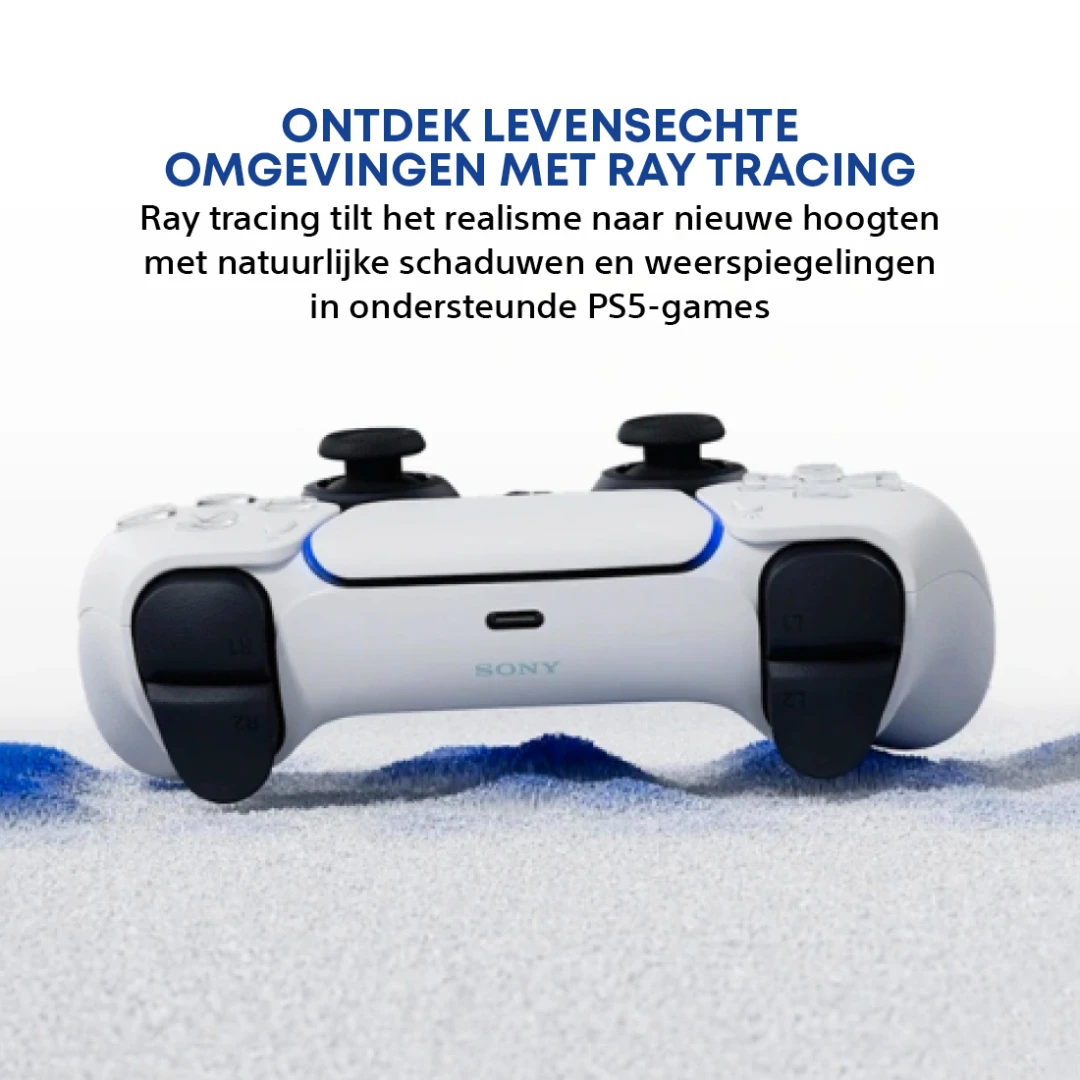– Raytracing: Ga helemaal op in werelden waar lichtstralen individueel worden gesimuleerd, wat resulteert in levensechte schaduwen en reflecties in ondersteunde PS5-games.