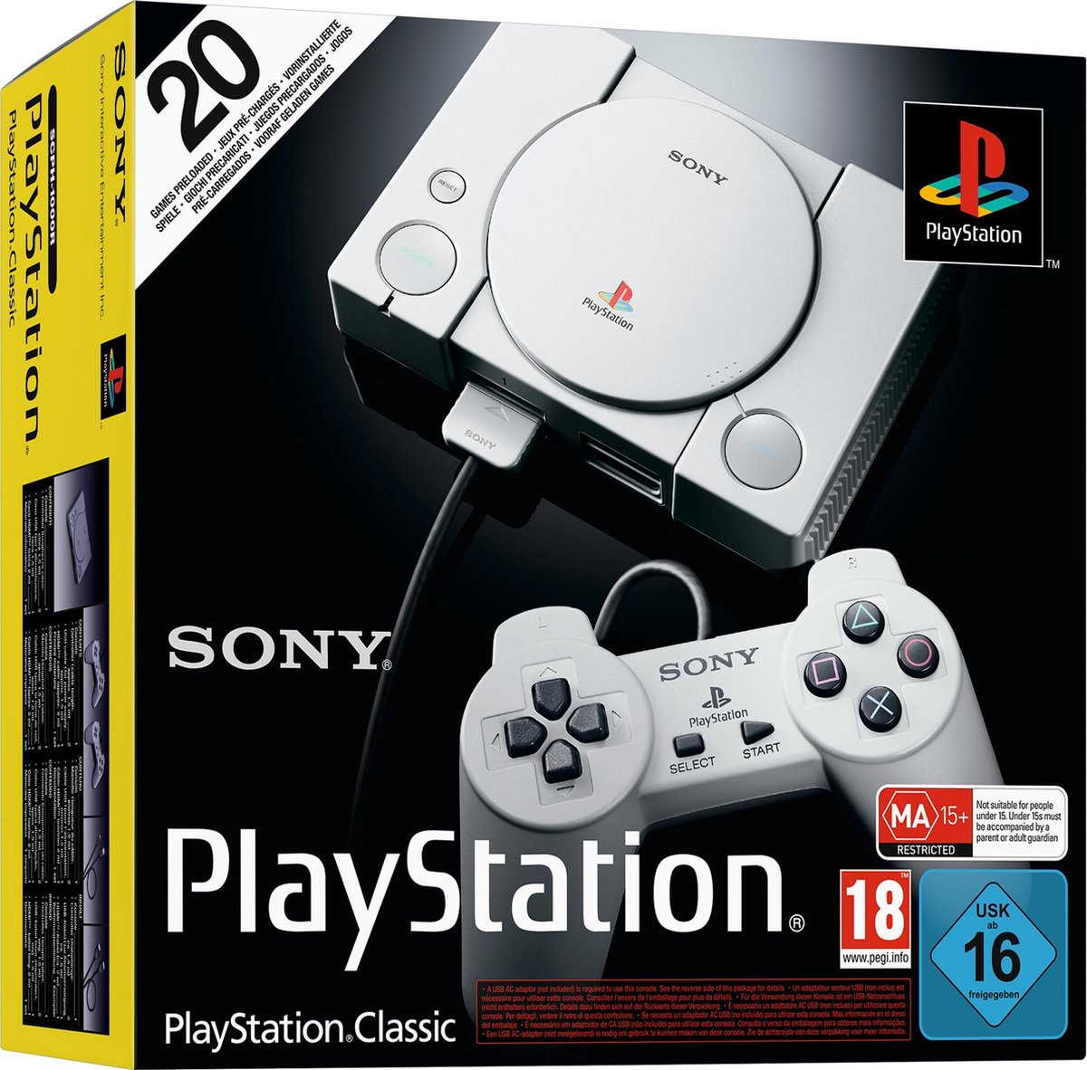 PlayStation Classic past perfect bij zowel de nostalgische PlayStation fans die veel plezier hebben beleefd met de originele PlayStation als gamers die PlayStation nog niet kennen en die de klassieke PlayStation games uit de jaren 90 willen ontdekken. PlayStation Classic wordt geleverd met een HDMI™-kabel voor verbinding met externe displays, zoals tv-monitors, en een USB-kabel voor aansluiting op een USB AC-adapter (apart verkrijgbaar) voor voeding via een stopcontact. Op bepaalde ondersteunde titels kunnen gebruikers met of tegen hun vrienden spelen met de twee controllers die worden meegeleverd.