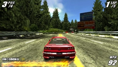 De ultieme kick van razendsnelle gameplay krijgt in Burnout Legends een extra impuls door stuntparkoersen uit Burnout, Burnout 2: Point of Impact en Burnout 3: Takedown, allemaal verbeterd voor agressieve PSP-races.