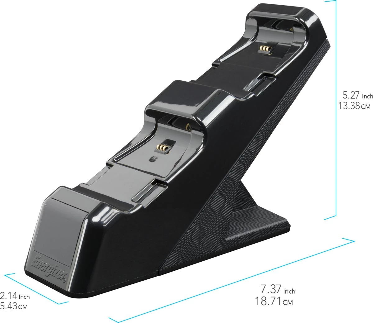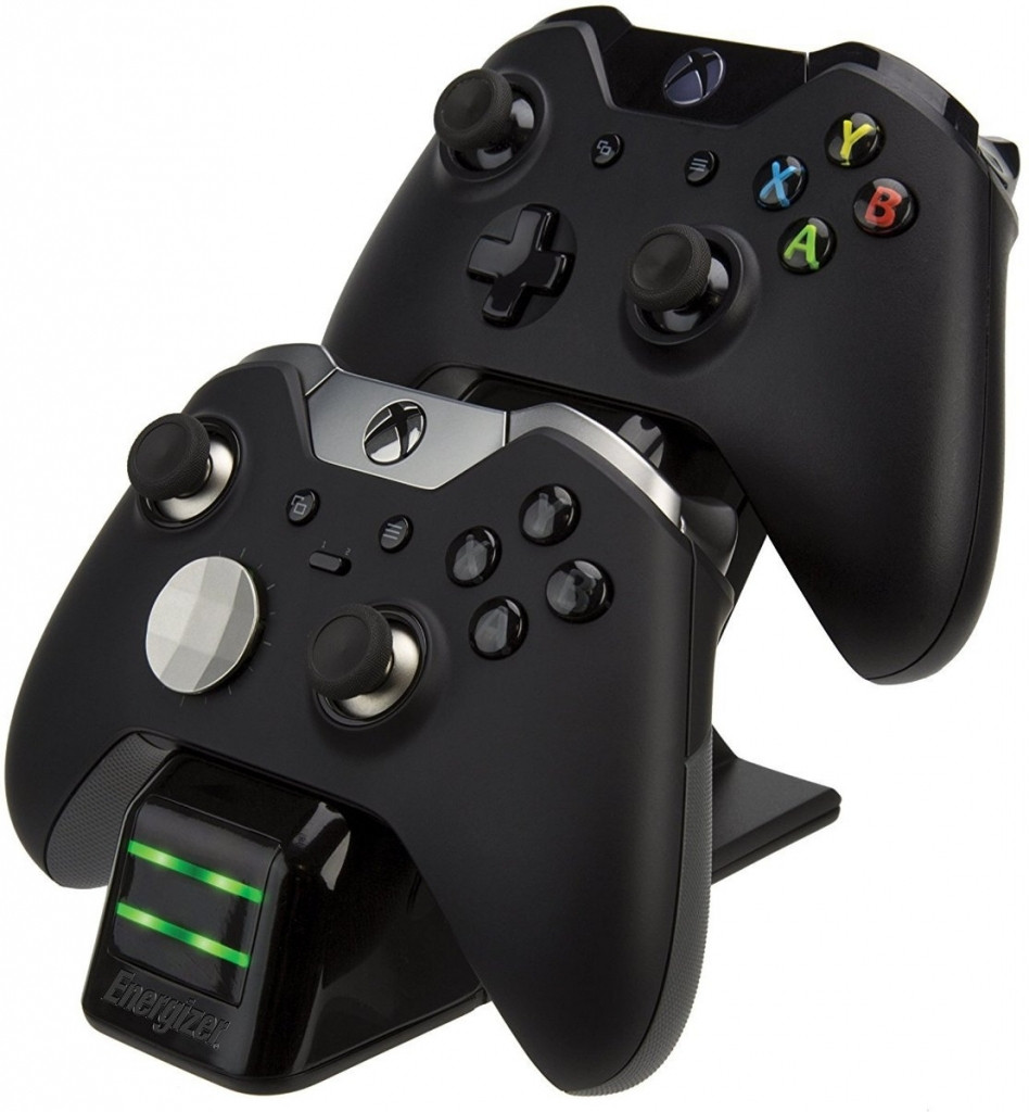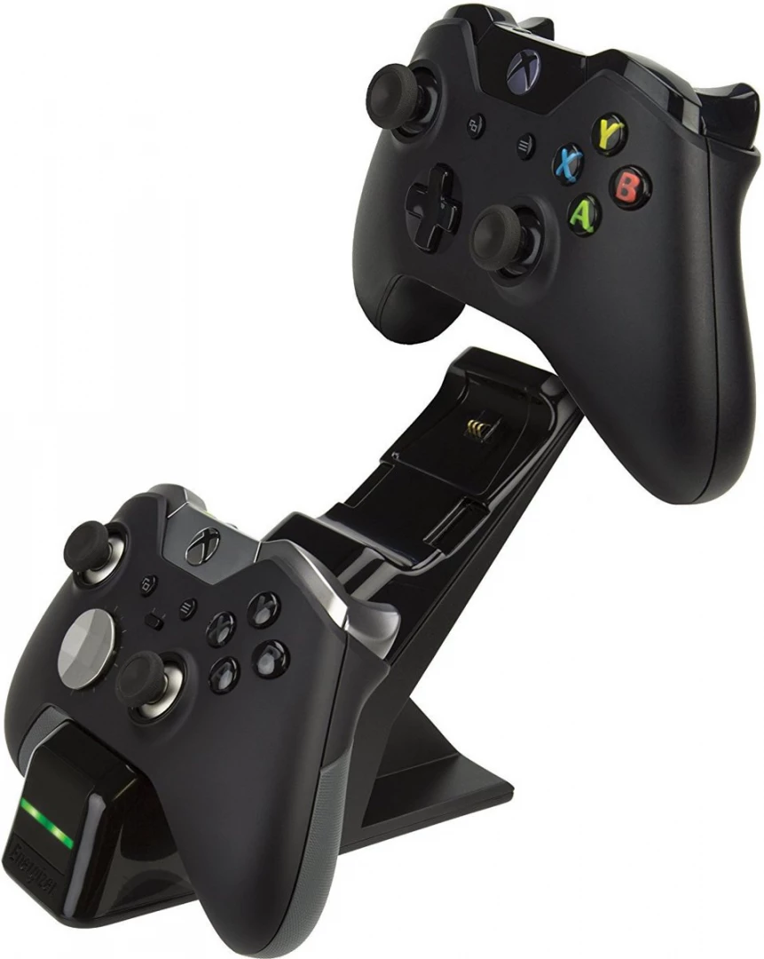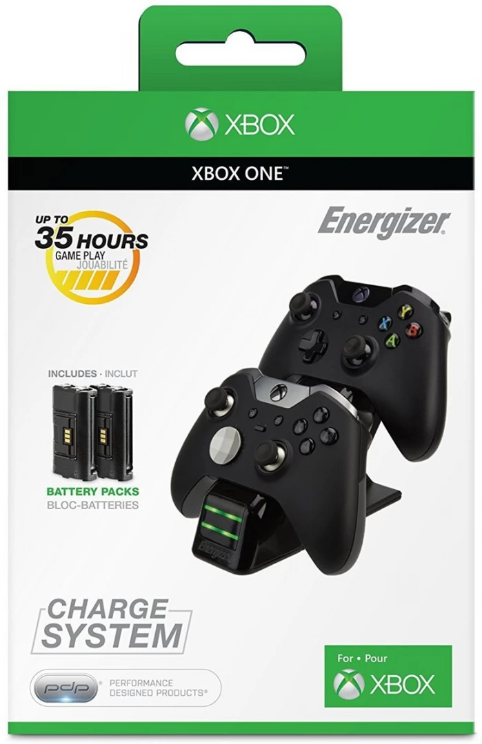 2X draadloze oplader voor de Xbox One met een AC stroomadapter voor snel opladen. Rode en groene LED-indicatorlampjes voor de oplaadstatus. Matte en glanzende zwarte en chromen details. Dit gestroomlijnde ontwerp sluit perfect aan op de nieuwste console! Inclusief 2 1200 mAh Energizer oplaadbare batterijen - goed voor zo'n 40 uur.