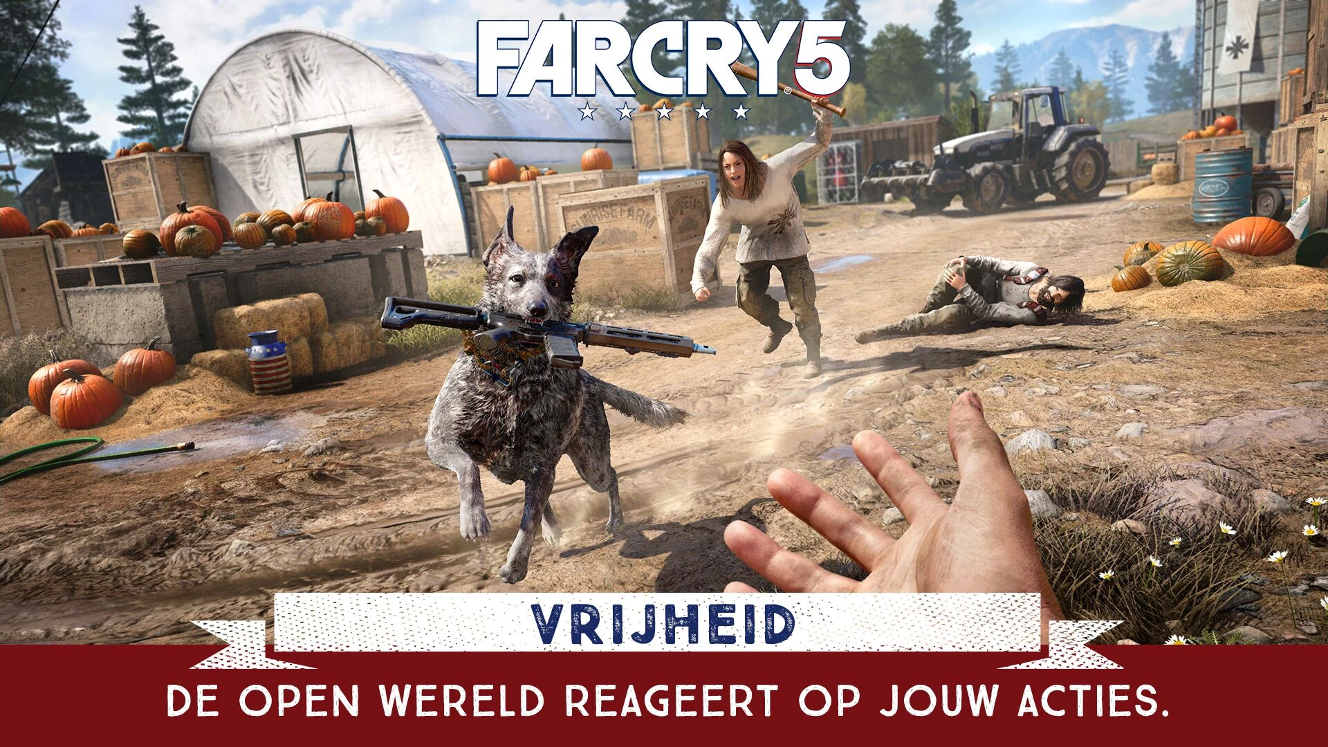 Verken Hope County, haar rivieren, landschap en luchtruim, met het grootste arsenaal aan wapens en voertuigen ooit in een Far Cry game. Jij bent de held van het verhaal in een spannende wereld die reageert op alles wat jij doet. Een wereld waarin de plaatsen die je ontdekt en de locals met wie je samenwerkt jouw verhaal vormen op manieren die je nooit ziet aankomen.