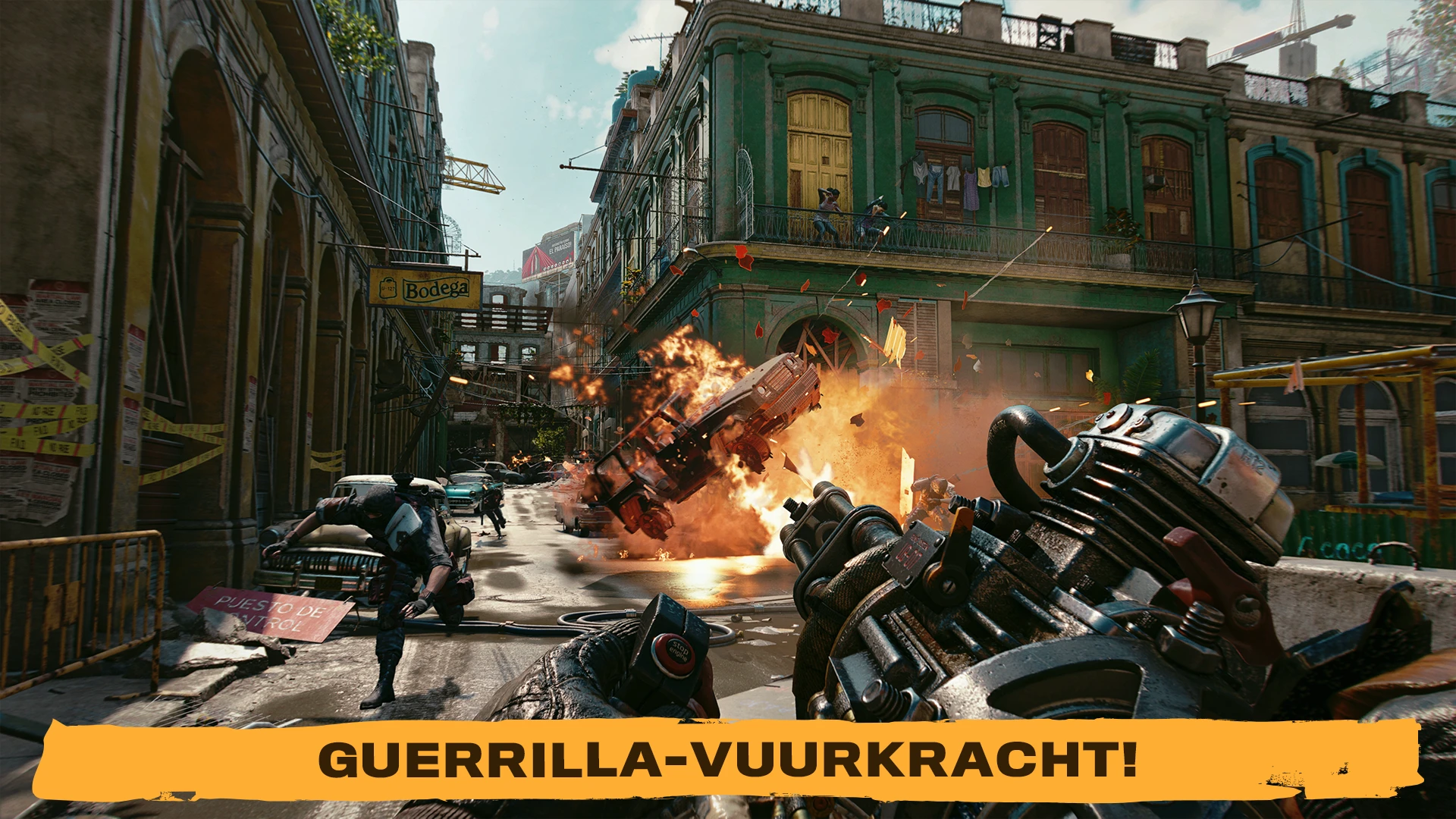 Gebruik geïmproviseerde wapens, voertuigen en de nieuwe huurlingen Amigos om het tirannieke regime omver te werpen