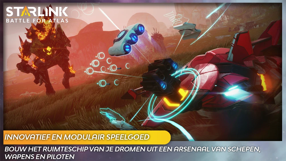 n Starlink: Battle for Atlas leid je een heldhaftig team van interstellaire piloten om het Atlas-sterrenstelsel van het Vergeten Legioen te bevrijden. Dankzij innovatief modulair speelgoed bouw je unieke ruimteschepen die on-the-fly aangepast kunnen worden voor een nieuwe manier van spelen. Hierdoor kun je makkelijk inspelen op elke uitdaging die je tegenkomt in dit epische open wereldavontuur.