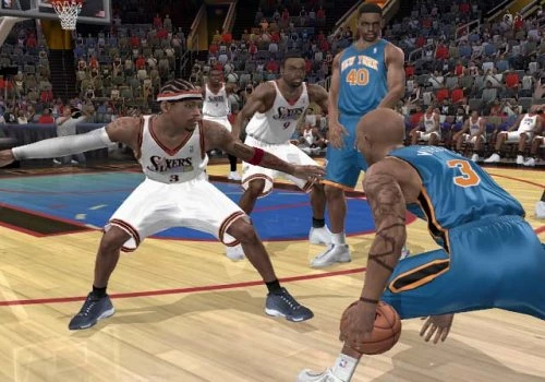 Speel 24/7 basket, zoals het een echte pro betaamt. Ervaar de rush om voorbij Iverson te slamdunken in een buitenmaats Amerikaans basketbalstadion waar tienduizenden uitzinnige fans roepen, juichen en toeteren en waar echte commentatoren iedere beweging van je ontleden.